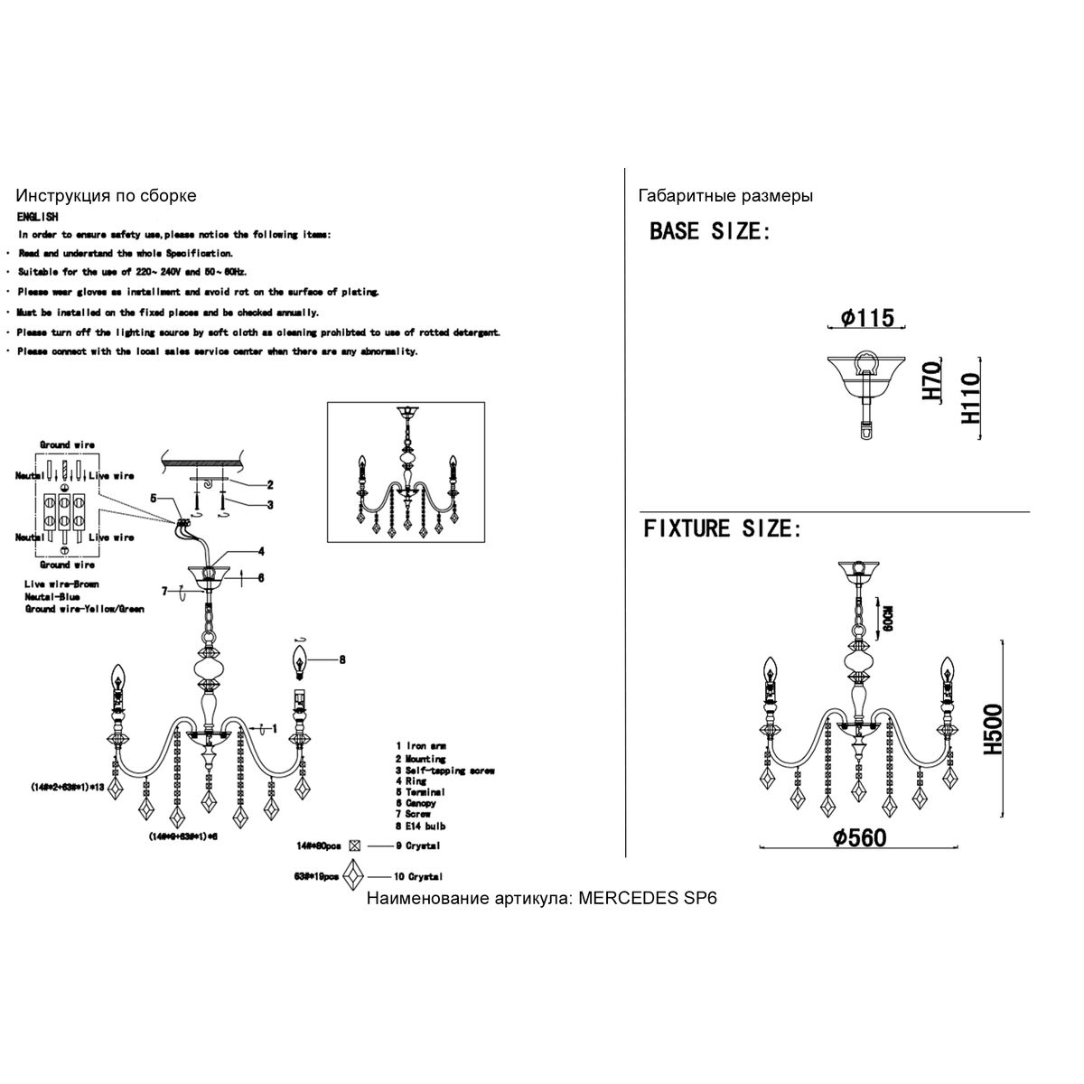 Подвесная люстра Crystal Lux MERCEDES SP6 CHROME/SMOKE