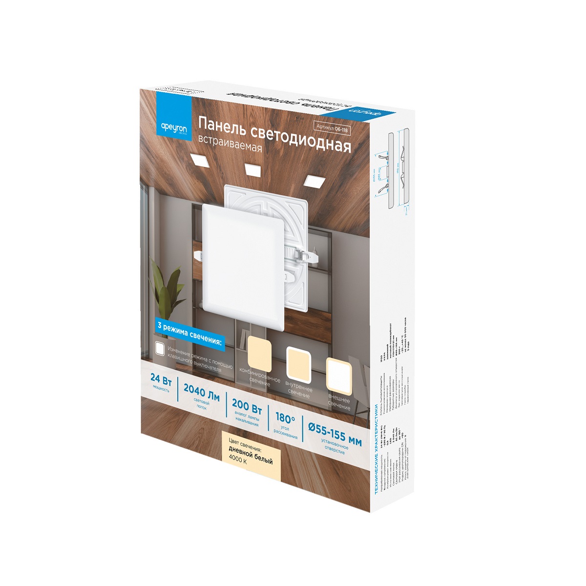 Встраиваемая светодиодная панель Apeyron 06-118