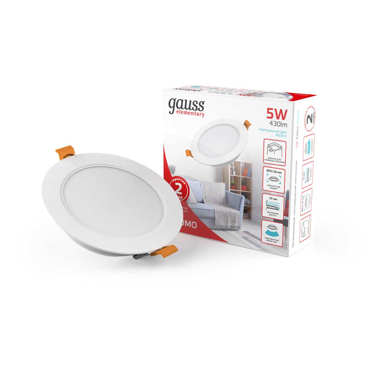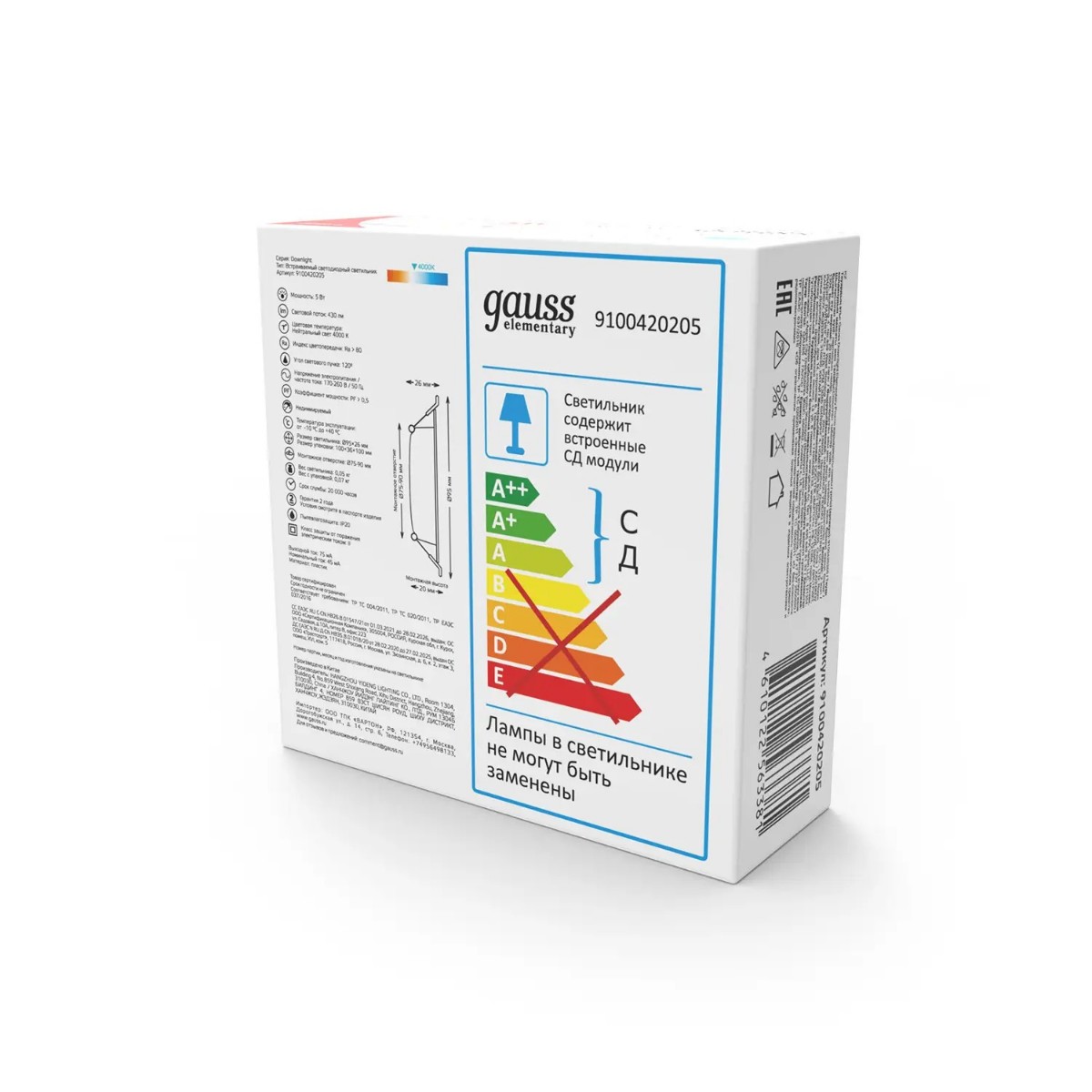 Встраиваемый светильник Gauss Elementary Downlight 9100420205