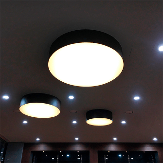 Выбирайте светильники со светодиодными или галогенными лампами - они не нагреваются. Нагрев может повредить натяжное полотно, оставить на нем некрасивые желтые пятна, которые невозможно удалить.