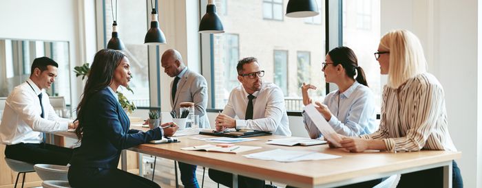 Групповой офис ориентирован на коммуникацию сотрудников и работу в команде. Все пространство такого офиса ориентированно на эффективное использование площади и расположение столов. И в отличие от секционных офисов о зонировании и организации для одного сотрудника больше рабочего пространства, чем письменный стол речи не идет.