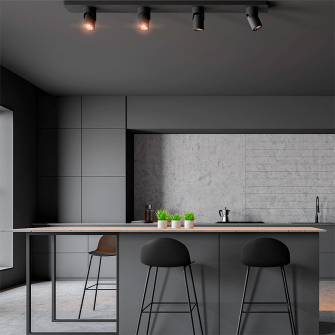 Когда вы хотите перенести освещение из центра, и сделать его более акцентированным. Благодаря конструкции, споты можно поворачивать и направлять их свет в нужное вам место. Здесь же стоит отметить, что такое решение идеально подходит в случае подвесного или натяжного потолка. Эти приборы могут монтироваться в любой его точке. Все провода будут скрыты под полотном. Кроме того, вы не будете ограничены количеством рожков. Споты можно размещать где угодно, и в любом количестве.