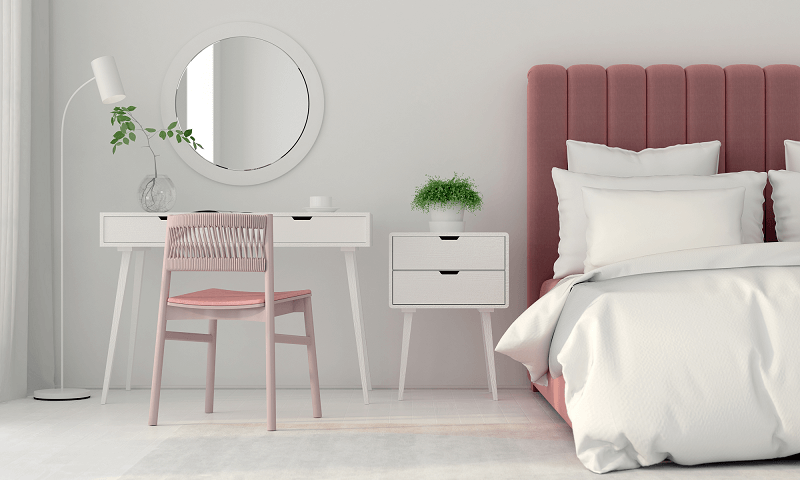 Прикроватные тумбочки, на которые обычно ставят настольную лампу, занимают довольно много места. Не каждая спальня располагает лишними метрами, а почитать перед сном или просто настроить более расслабляющее мягкое освещение хочется почти всем. Проблему дефицита места и освещения решит торшер – поставьте его около кровати, когда хотите полежать с любимой книжкой, и переставьте к туалетному столику – когда делаете макияж.