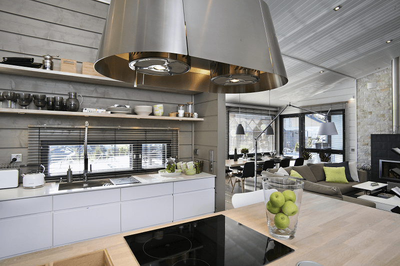 Вы удивитесь, но торшер может быть уместен даже на кухне. Например, если в обеденной зоне или зоне готовки не хватает света. Торшер с двумя плафонами легко решит обе проблемы, причем одновременно. Торшер можно принести из другой комнаты, либо купить эргономичную модель специально для кухни, которая не занимает много места и прекрасно решает сиюминутные важные задачи.
