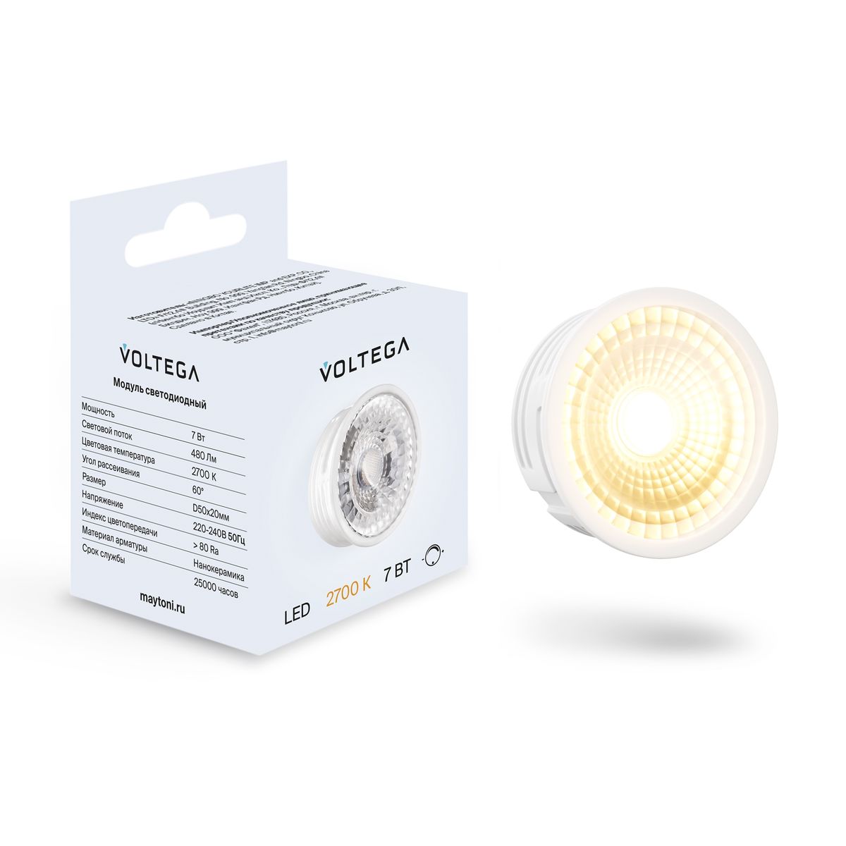 Светодиодный диммируемый модуль Voltega 7W 2700K прозрачный 7204