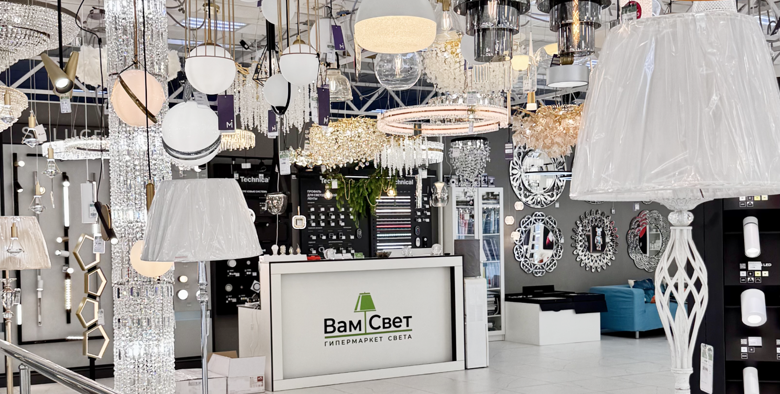 В салоне представлены все виды освещения – от декоративного до технического. В магазине вы можете не только выбрать необходимые светильники, но и получить профессиональную консультацию у опытных продавцов-консультантов.
